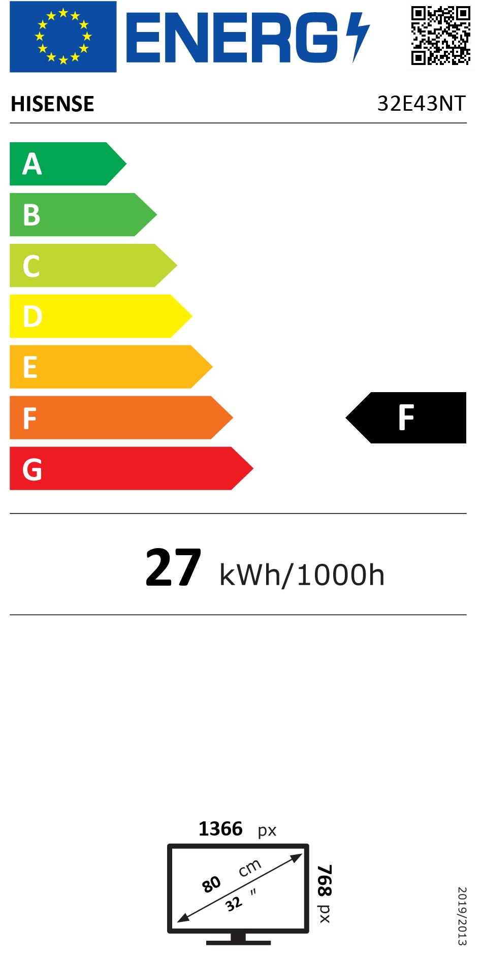 TV Hisense 32E43NT 80cm 32" (80 cm) úhlopř • HD • HD Ready (1366 × 768 px) rozliš • DVB-T2/C (HEVC/H.265) • • LED • 2× HDMI energ.štítek F